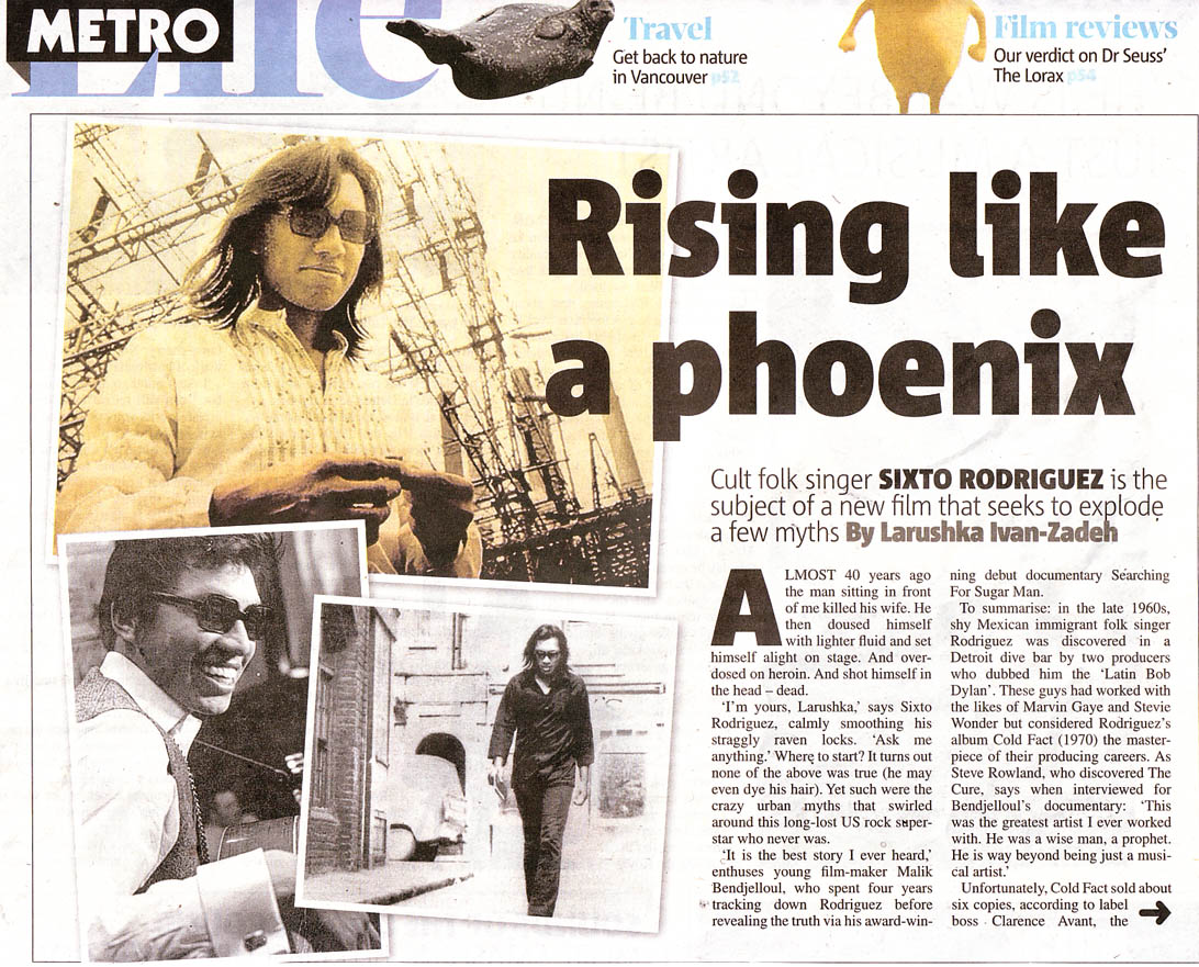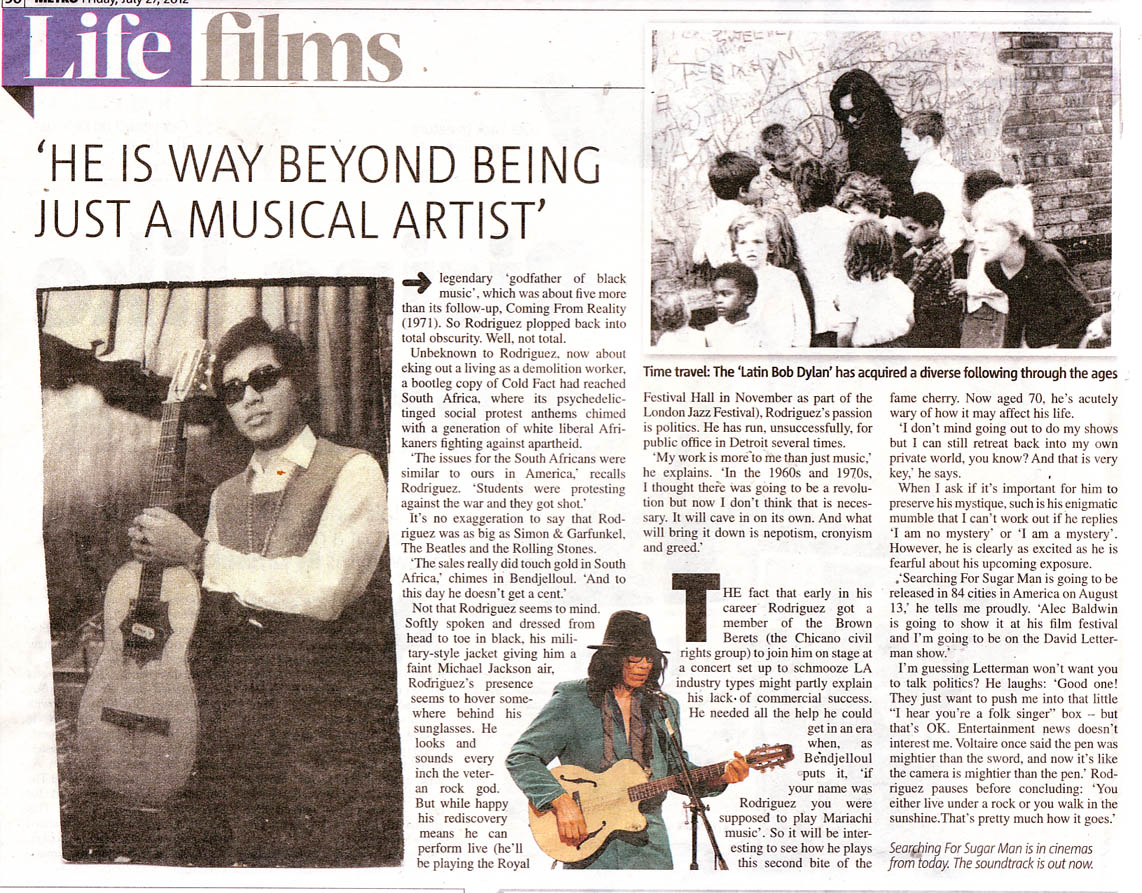 Searching For Sugar Man Feature – Metro – 27 July 2012 Posted bySugarMan.org27 July 201227 July 2012Posted inNewspapers & Magazines, Reviews & Interviews, Searching For Sugar Man Film Searching For Sugar Man Feature – Metro – 27 July 2012 Searching For Sugar Man Feature – Metro – 27 July 2012 -33.923776 18.423345 Discover more from SugarMan.org Subscribe to get the latest posts sent to your email. Type your email… Subscribe Share this: Click to share on Facebook (Opens in new window) Facebook Click to share on Reddit (Opens in new window) Reddit Click to share on Tumblr (Opens in new window) Tumblr Click to share on WhatsApp (Opens in new window) WhatsApp Click to email a link to a friend (Opens in new window) Email Click to share on LinkedIn (Opens in new window) LinkedIn Click to share on Pinterest (Opens in new window) Pinterest Click to share on Threads (Opens in new window) Threads Click to share on X (Opens in new window) X Click to share on Bluesky (Opens in new window) Bluesky More Click to print (Opens in new window) Print Click to share on Pocket (Opens in new window) Pocket Related Published by SugarMan.org 10 July 1942 to 8 August 2023 View more posts