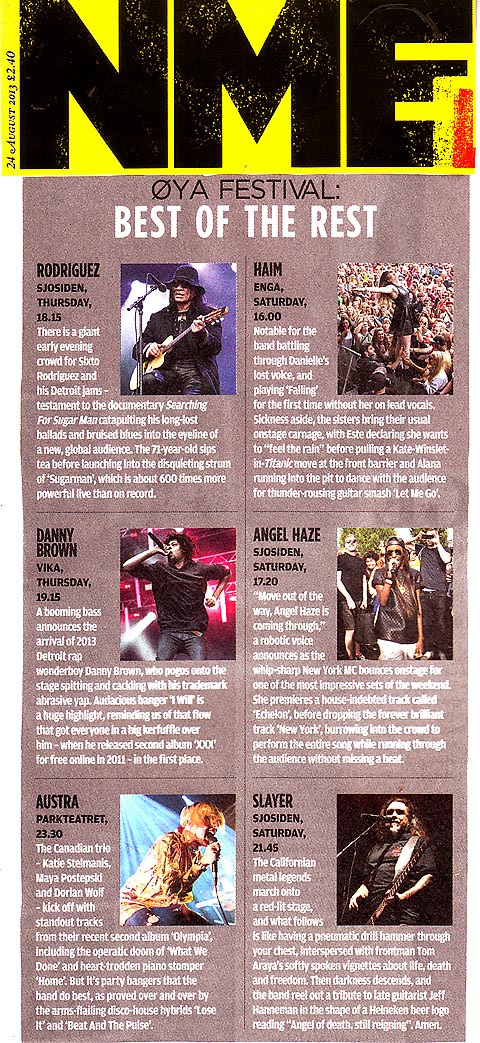 NME – Oya Festival Best of the Rest – 22 Aug 2013 Posted bySugarMan.org21 August 201321 August 2013Posted inNews, Newspapers & Magazines, Performances, Reviews & InterviewsTags:NME Discover more from SugarMan.org Subscribe to get the latest posts sent to your email. Type your email… Subscribe Share this: Click to share on Facebook (Opens in new window) Facebook Click to share on Reddit (Opens in new window) Reddit Click to share on Tumblr (Opens in new window) Tumblr Click to share on WhatsApp (Opens in new window) WhatsApp Click to email a link to a friend (Opens in new window) Email Click to share on LinkedIn (Opens in new window) LinkedIn Click to share on Pinterest (Opens in new window) Pinterest Click to share on Threads (Opens in new window) Threads Click to share on X (Opens in new window) X Click to share on Bluesky (Opens in new window) Bluesky More Click to print (Opens in new window) Print Click to share on Pocket (Opens in new window) Pocket Related Published by SugarMan.org 10 July 1942 to 8 August 2023 View more posts