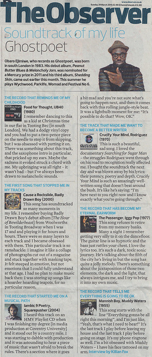 Rodriguez – The Observer – Ghostpoet’s ‘Soundtrack To My Life’ – 29 March 2015